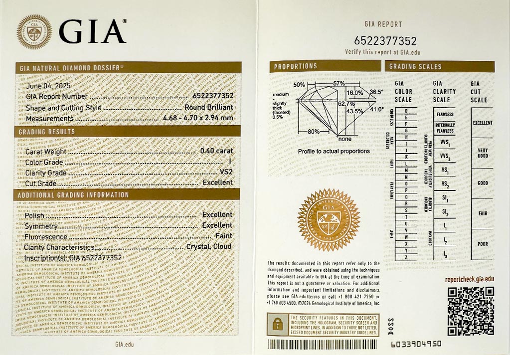 Diamant 0.40ct I/VS2 s GIA certifikátem