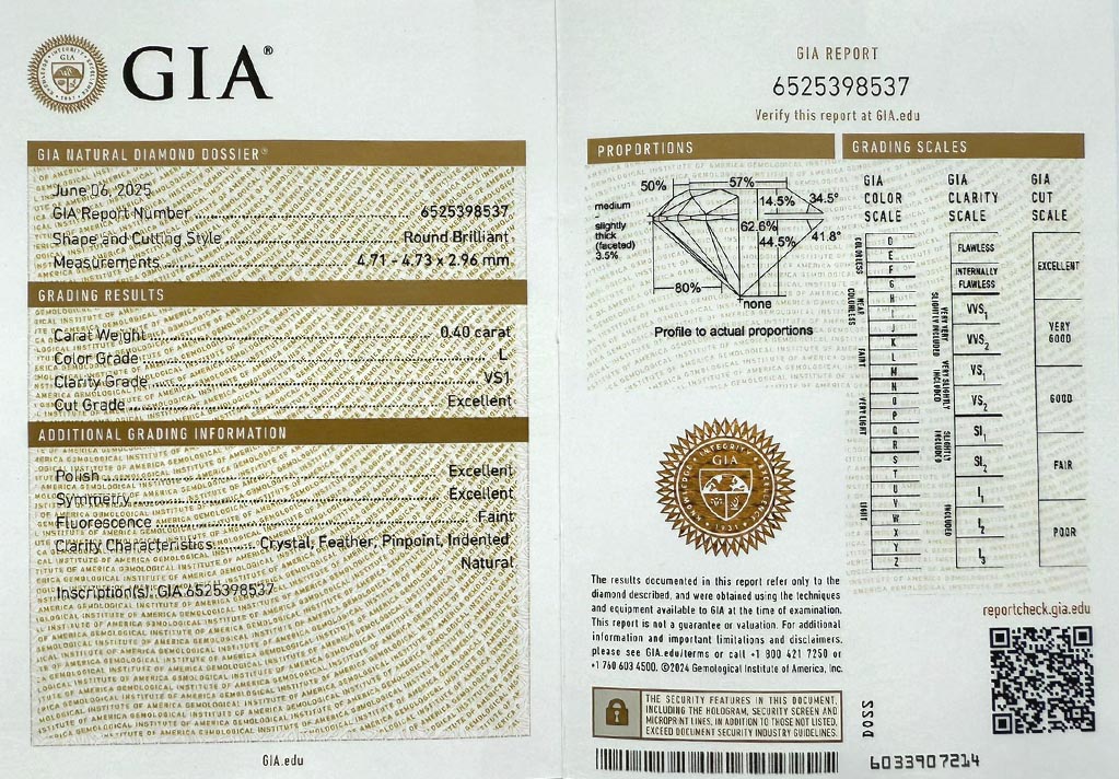 Diamant 0.40ct L/VS1 s GIA certifikátem