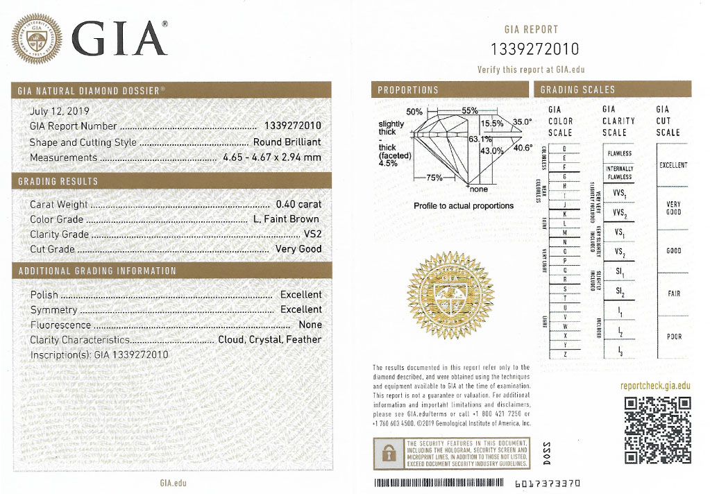 Diamant 0.40ct L/VS2 s GIA certifikátem