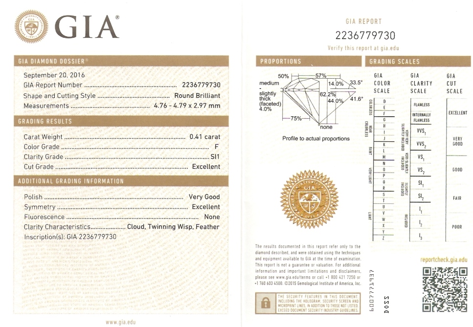 Diamant 0.41ct F/SI1 s GIA certifikátem