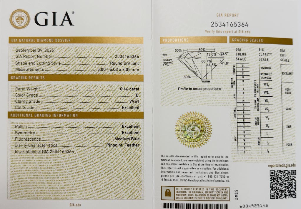 Diamant 0.46ct E/VVS1 s GIA certifikátem