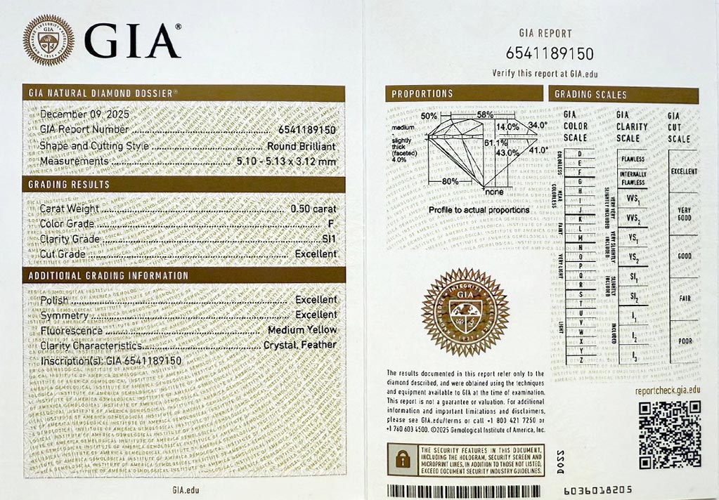 Diamant je včetně certifikátu GIA a je laserově číslován na své rundistě laboratoří GIA.