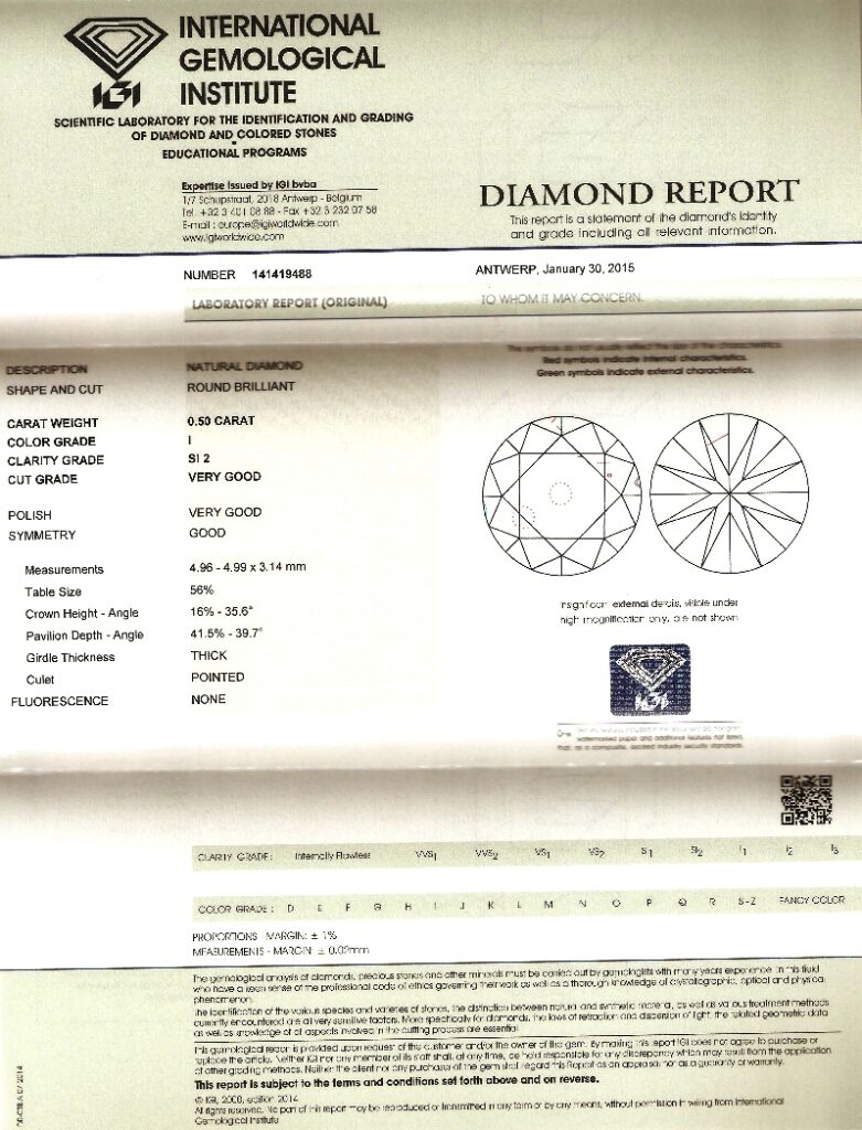 Diamant 0.50ct I/SI2 s IGI certifikátem