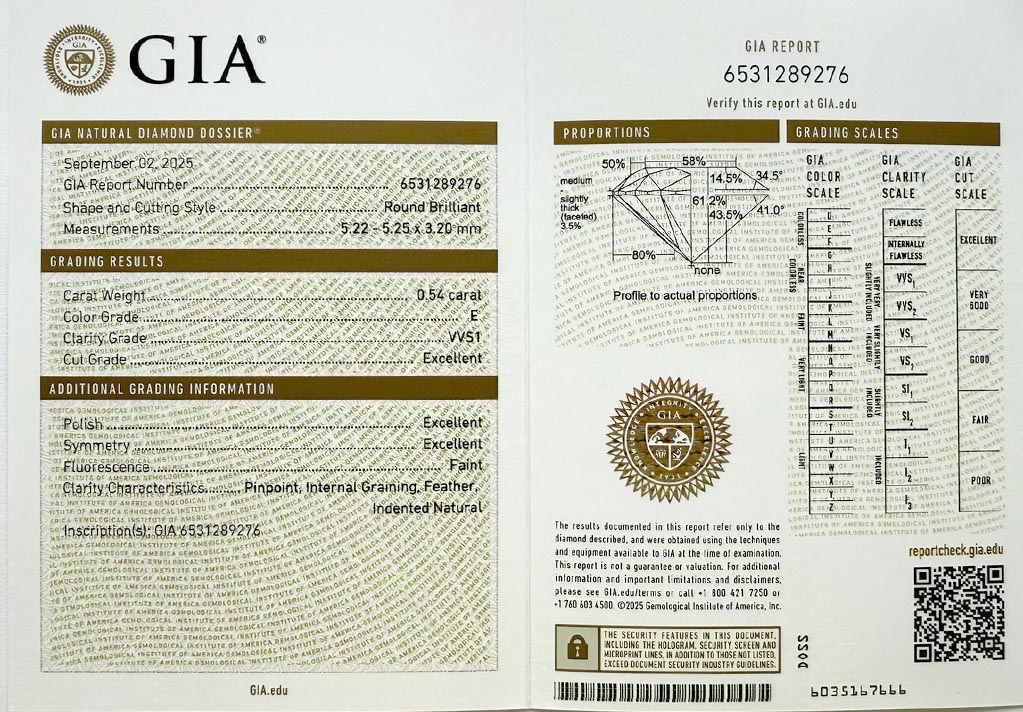 Diamant 0.54ct E/VVS1 s GIA certifikátem
