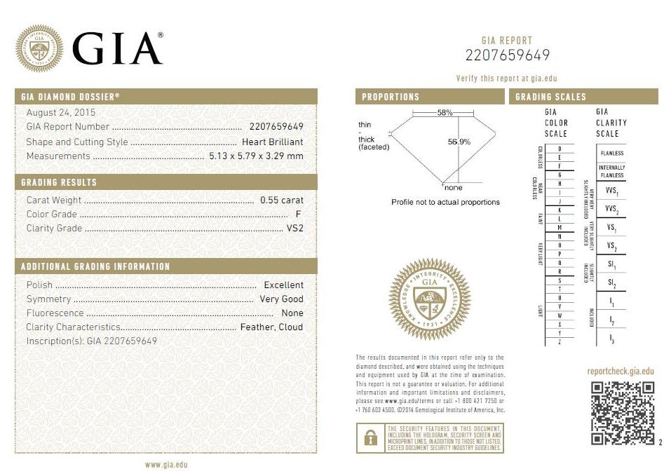 byl založen v roce 1931 a patří k absolutní špičce mezi gemologickými laboratořemi po celém světě a dodržuje pravidla stanovená Diamond High Council v plném rozsahu. Všechny diamanty na stránkách VVDiamonds opatřeny certifikátem GIA, lze verifikovat na stránkách GIA. Většina diamantů je laserově číslována pro větší bezpečnost obchodu.