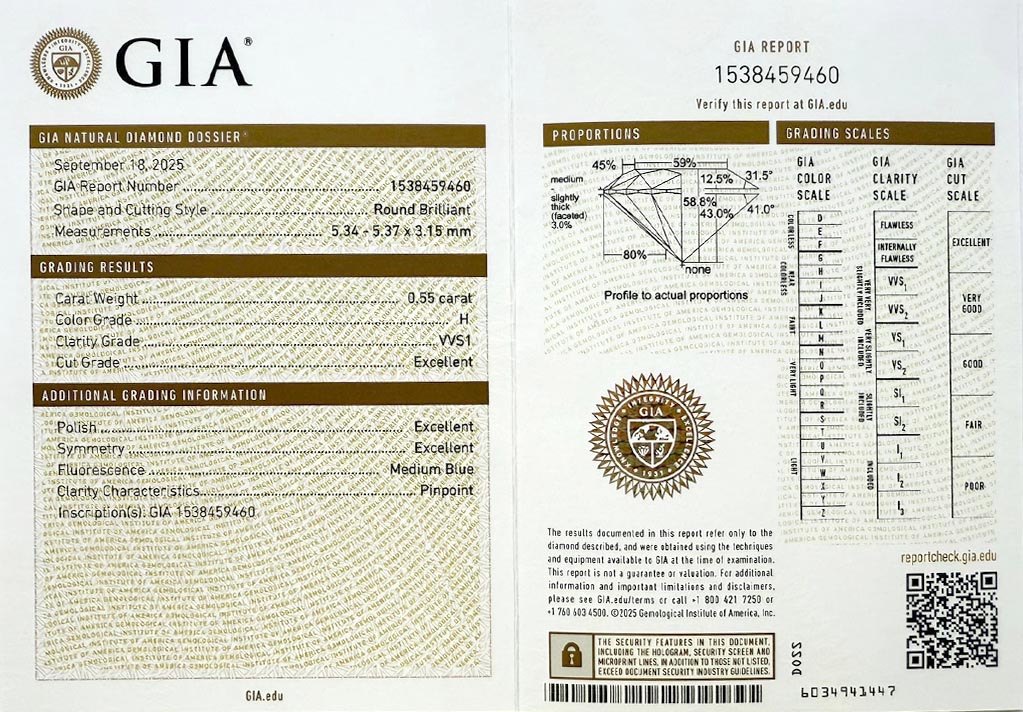 Diamant 0.55ct H/VVS1 s GIA certifikátem