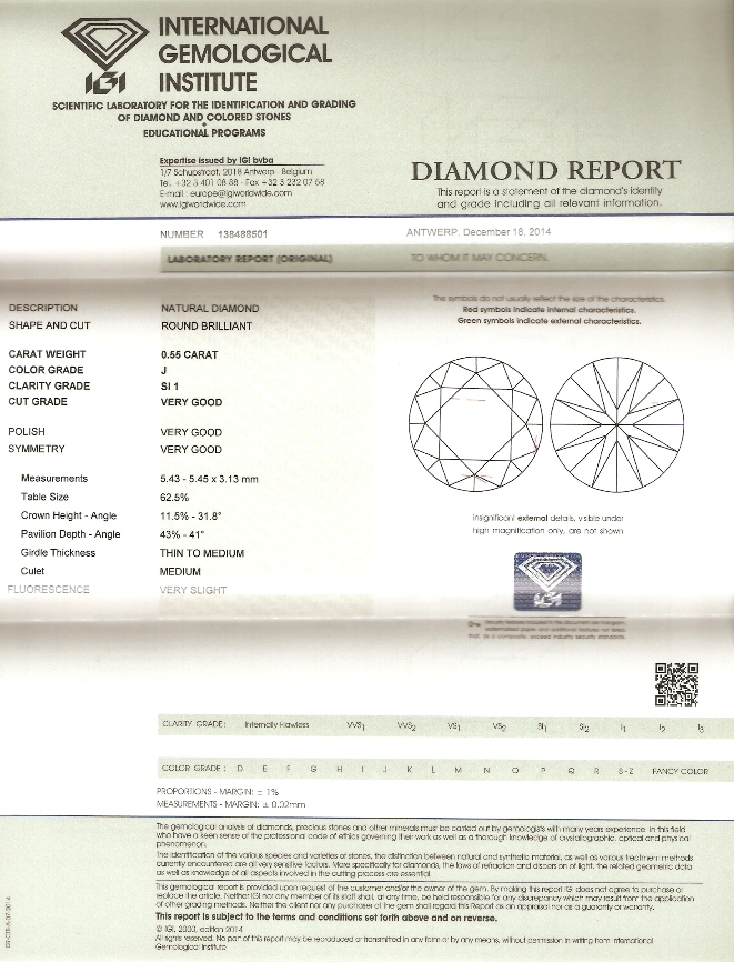 Diamant 0.55ct J/SI1 s IGI certifikátem