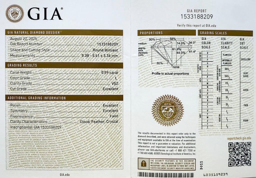 Diamant 0.59ct L/VS2 s GIA certifikátem