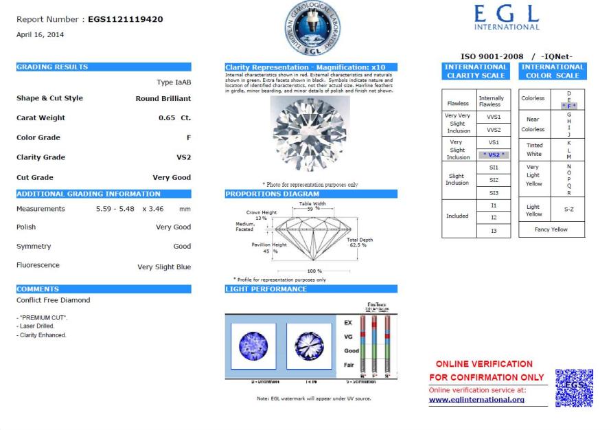 Diamant 0.65ct F/VS2 s EGL certifikátem