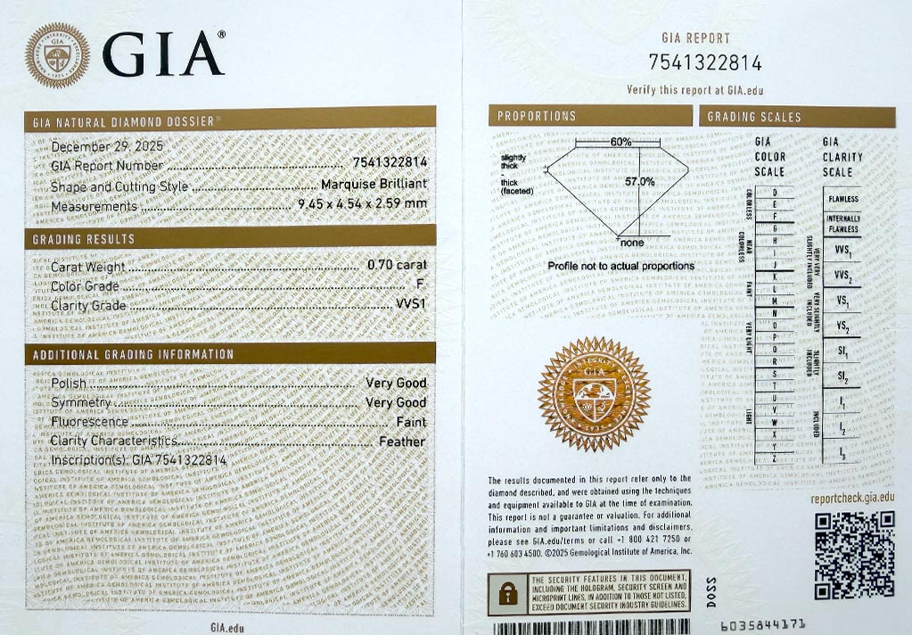 byl založen v roce 1931 a patří k absolutní špičce mezi gemologickými laboratořemi po celém světě a dodržuje pravidla stanovená Diamond High Council v plném rozsahu. Všechny diamanty na stránkách VVDiamonds opatřeny certifikátem GIA, lze verifikovat na stránkách GIA. Většina diamantů je laserově číslována pro větší bezpečnost obchodu.