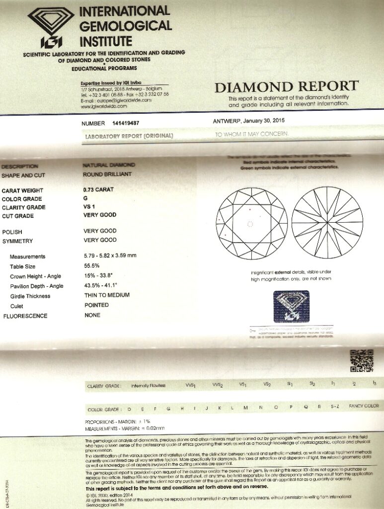 Diamant je včetně certifikátu IGI a je zataven do plastové kartičky IGI.