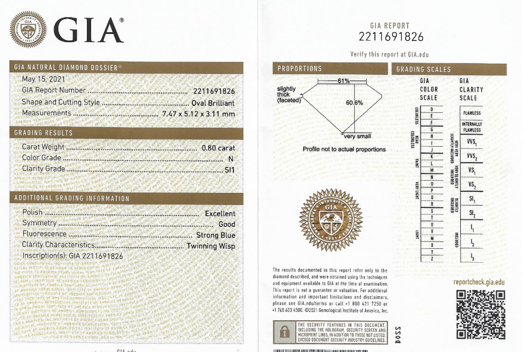 Diamant je včetně certifikátu GIA a je laserově číslován na své rundistě laboratoří GIA.