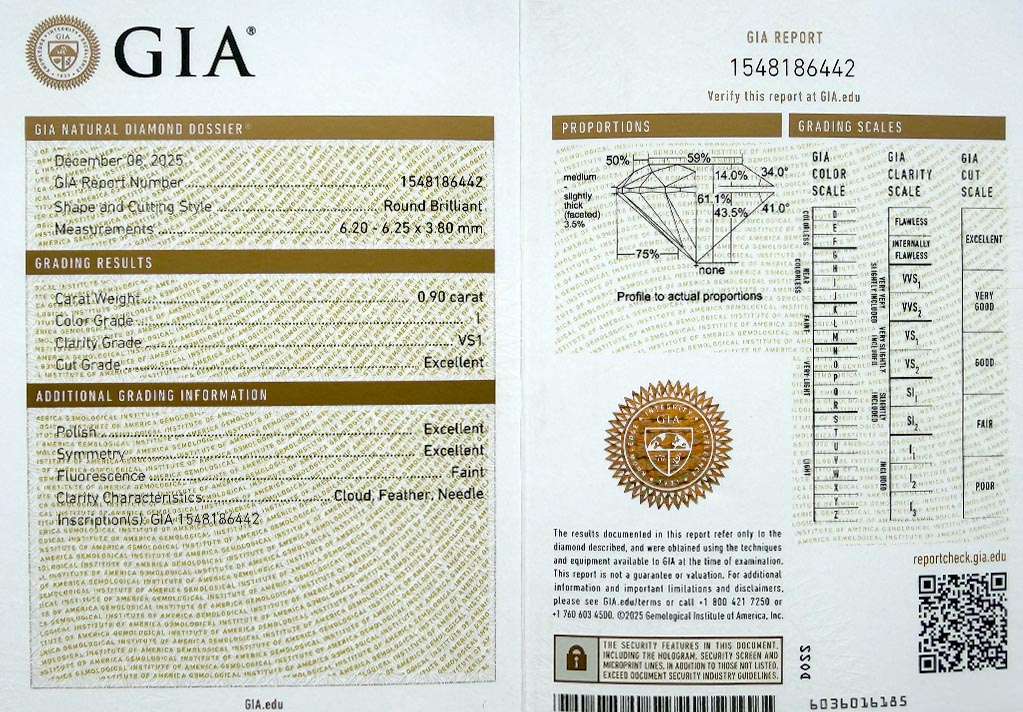Diamant je včetně certifikátu GIA a je laserově číslován na své rundistě laboratoří GIA.