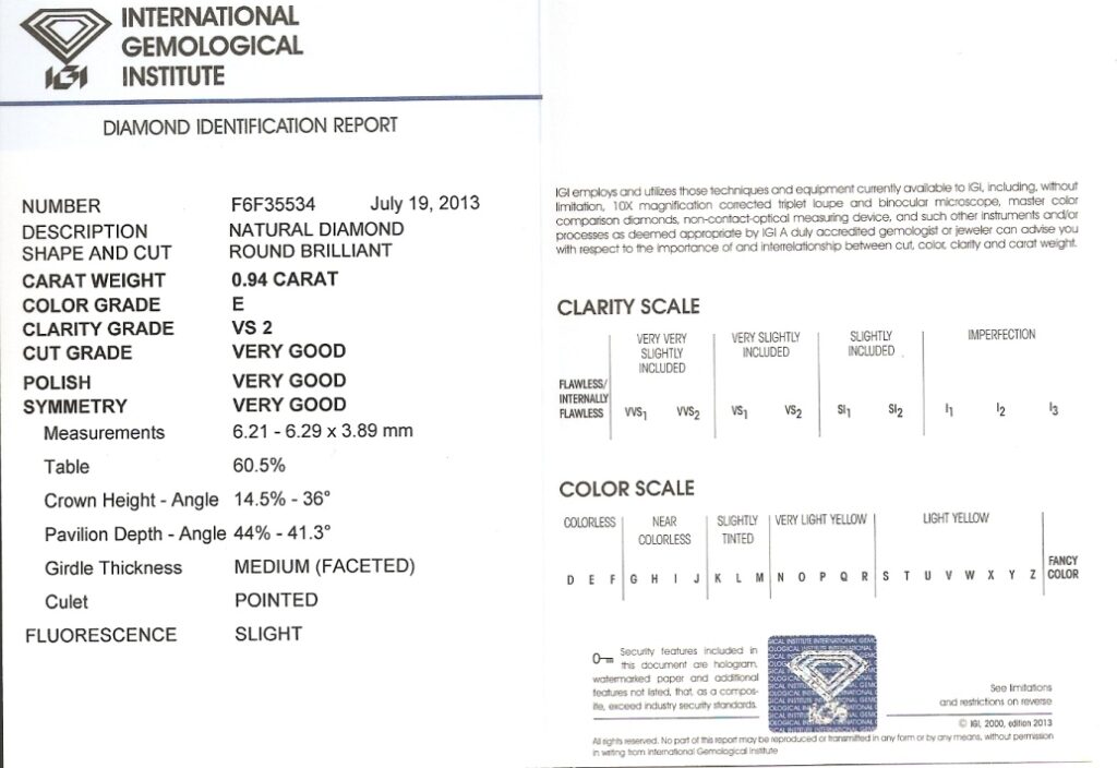 Diamant 0.94ct E/VS2 s IGI certifikátem