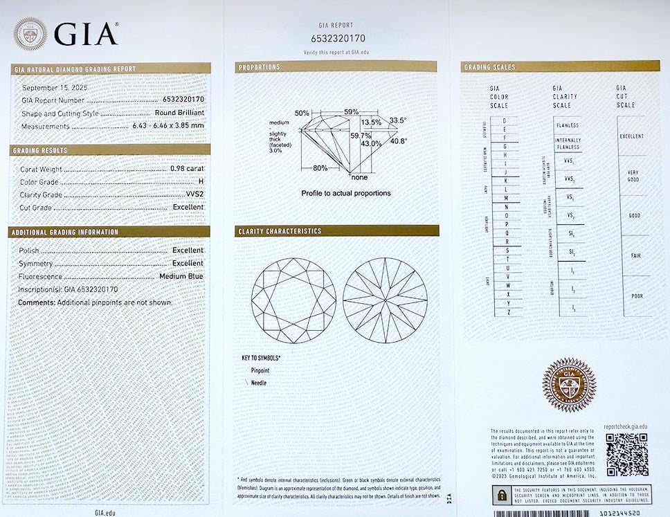 Diamant 0.98ct H/VVS2 s GIA certifikátem