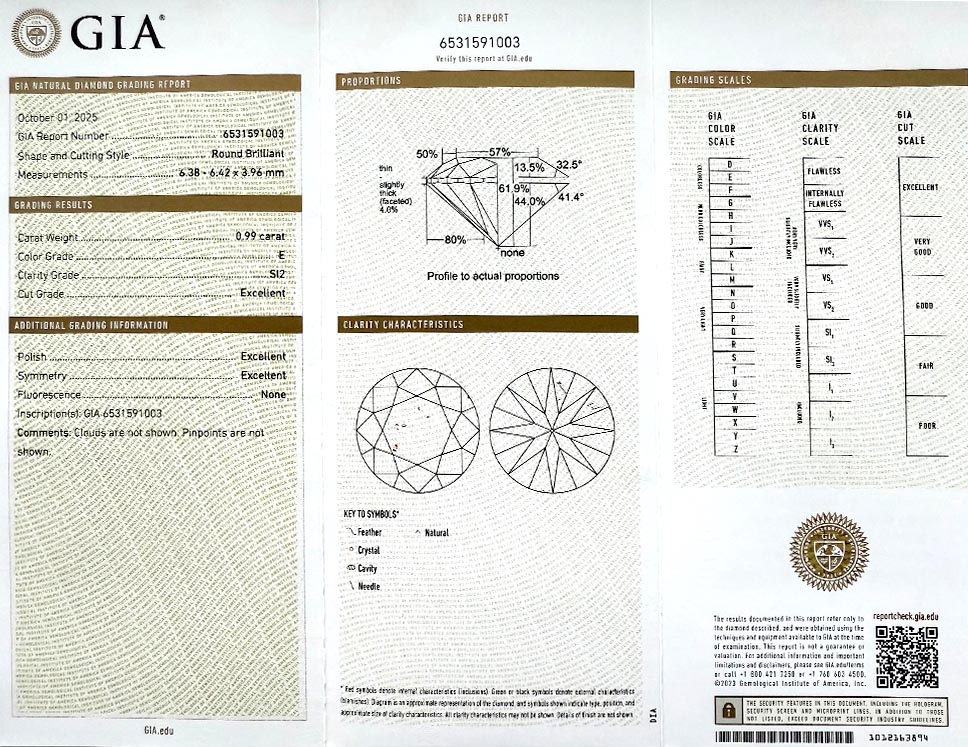 Diamant 0.99ct E/SI2 s GIA certifikátem