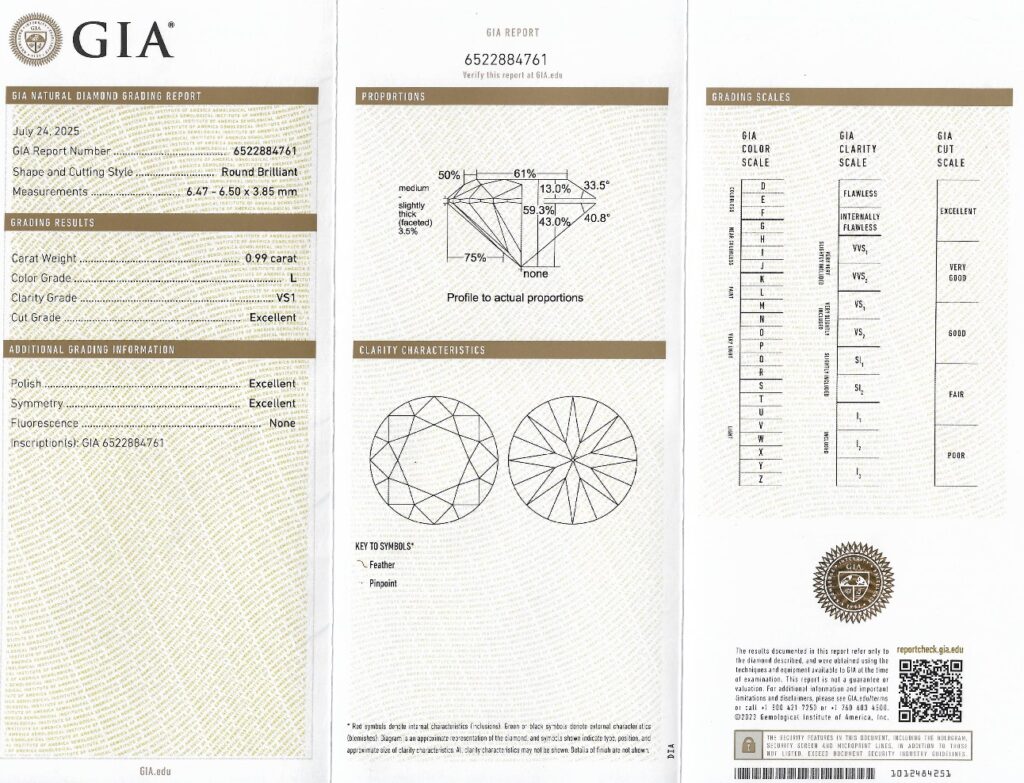 Diamant 0.99ct L/VS1 s GIA certifikátem