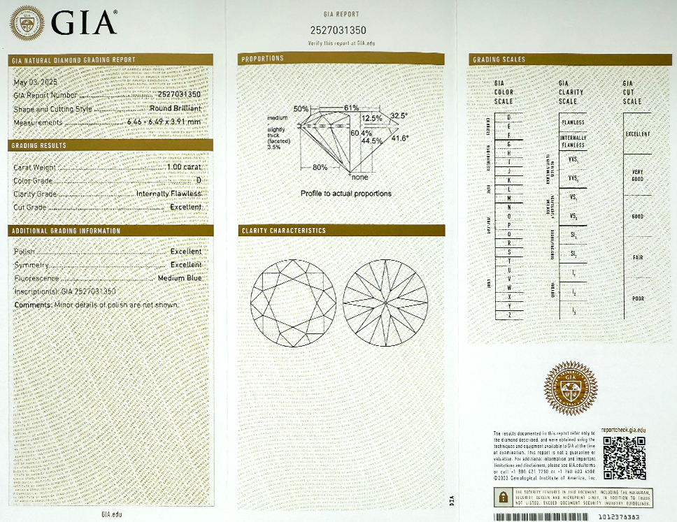 Diamant je včetně certifikátu GIA a je laserově číslován na své rundistě laboratoří GIA.