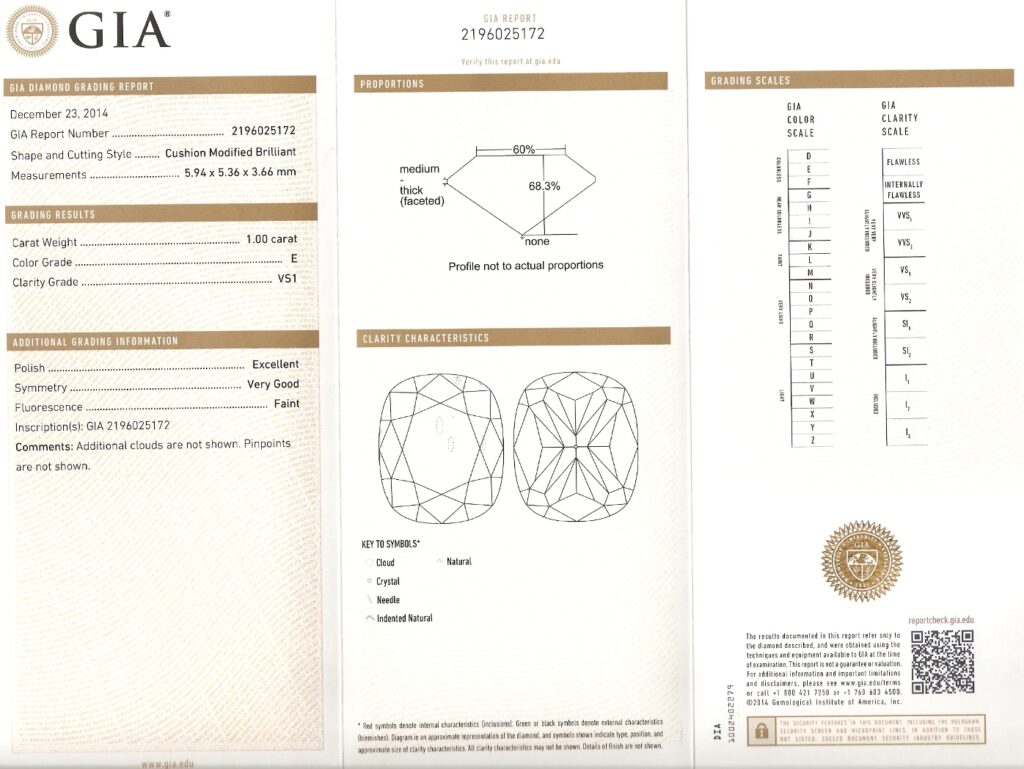 Diamant je včetně mezinárodně uznávaného certifikátu GIA a je laserově číslován na rundisce diamantu laboratoří GIA. Na diamant nelze aplikovat 5% sleva pro registrované uživatele.