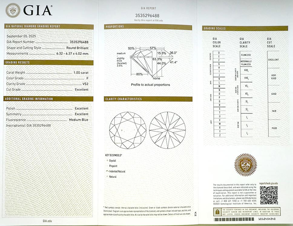 byl založen v roce 1931 a patří k absolutní špičce mezi gemologickými laboratořemi po celém světě a dodržuje pravidla stanovená Diamond High Council v plném rozsahu. Všechny diamanty na stránkách VVDiamonds opatřeny certifikátem GIA, lze verifikovat na stránkách GIA. Většina diamantů je laserově číslována pro větší bezpečnost obchodu.