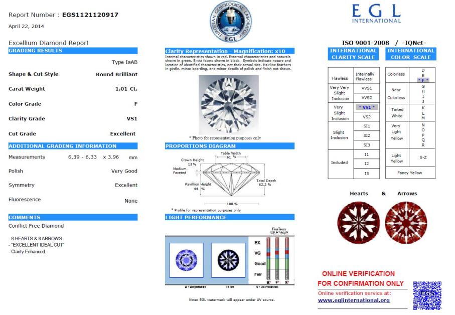 Diamant je včetně mezinárodně uznávaného certifikátu EGL International, číslo certifikátu: EGS1121120917Diamant je včetně certifikátu EGL International a je zataven do plastové kartičky EGL International. Na diamant nelze aplikovat 5% sleva pro registrované uživatele.