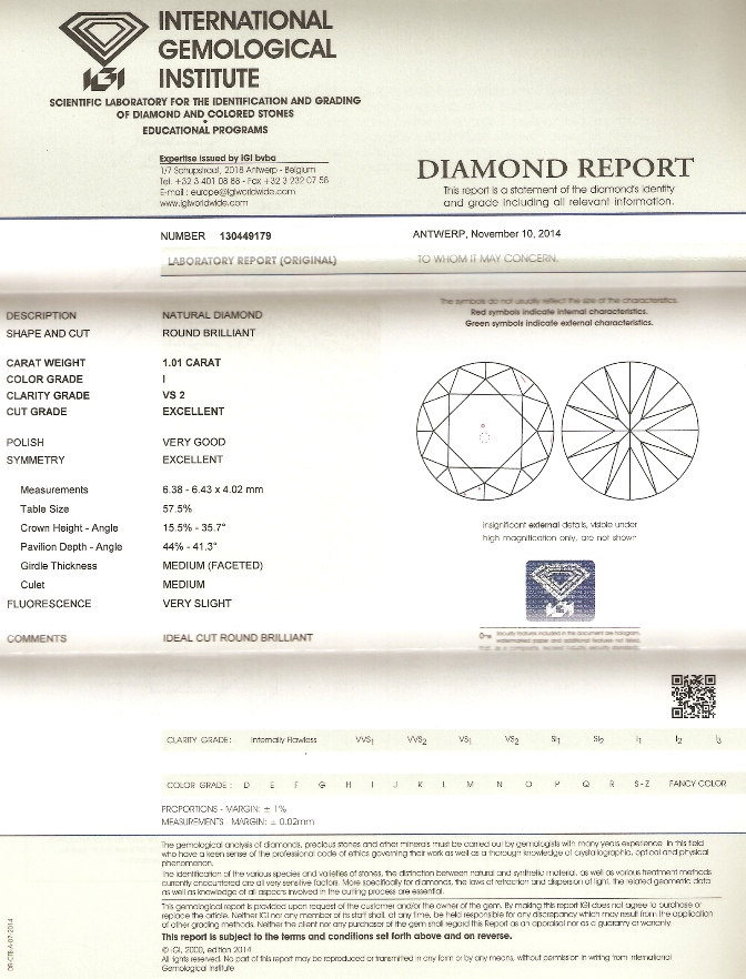 Diamant je včetně certifikátu IGI a je zataven do plastové kartičky IGI.