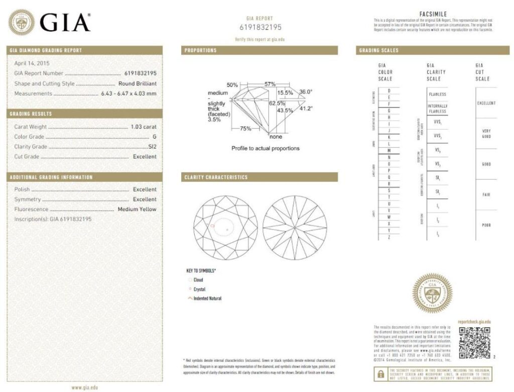 Diamant je včetně mezinárodně uznávaného certifikátu GIA a je laserově číslován na rundisce diamantu laboratoří GIA. Na diamant nelze aplikovat 5% sleva pro registrované uživatele.
