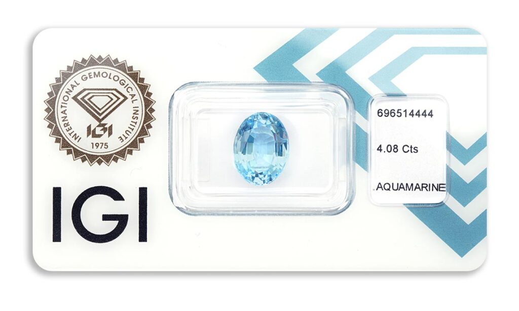 akvamarín 4.08ct blue s IGI certifikátem