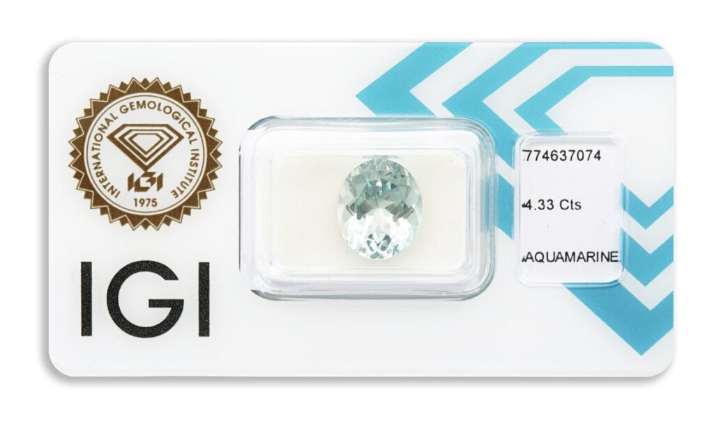 akvamarín 4.33ct light blue s IGI certifikátem