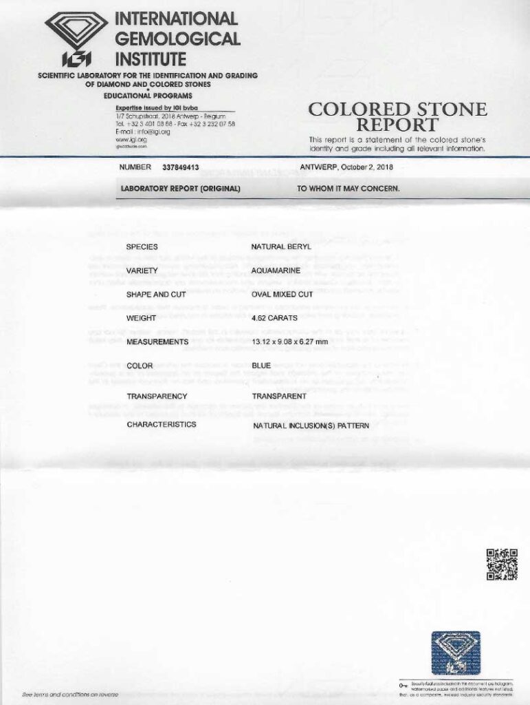 Kámen je včetně mezinárodně uznávaného certifikátu IGI a je zataven do ochranného pouzdra.