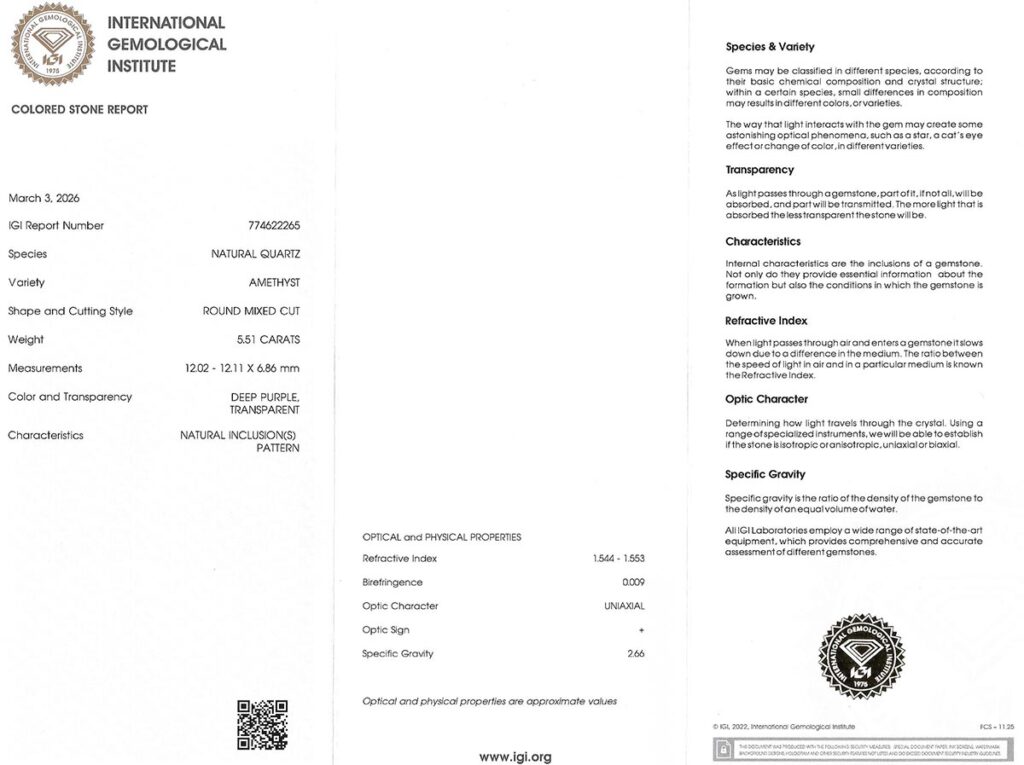 Kámen je včetně mezinárodně uznávaného certifikátu IGI a je zataven do ochranného pouzdra.