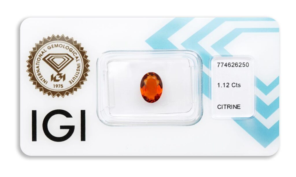 citrín 1.12ct deep yellowish orange s IGI certifikátem