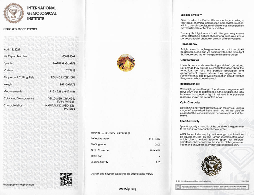 citrín 2.91ct yellowish orange s IGI certifikátem
