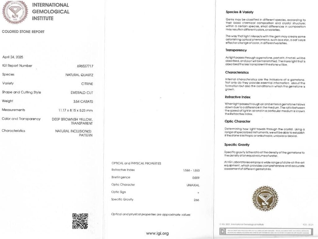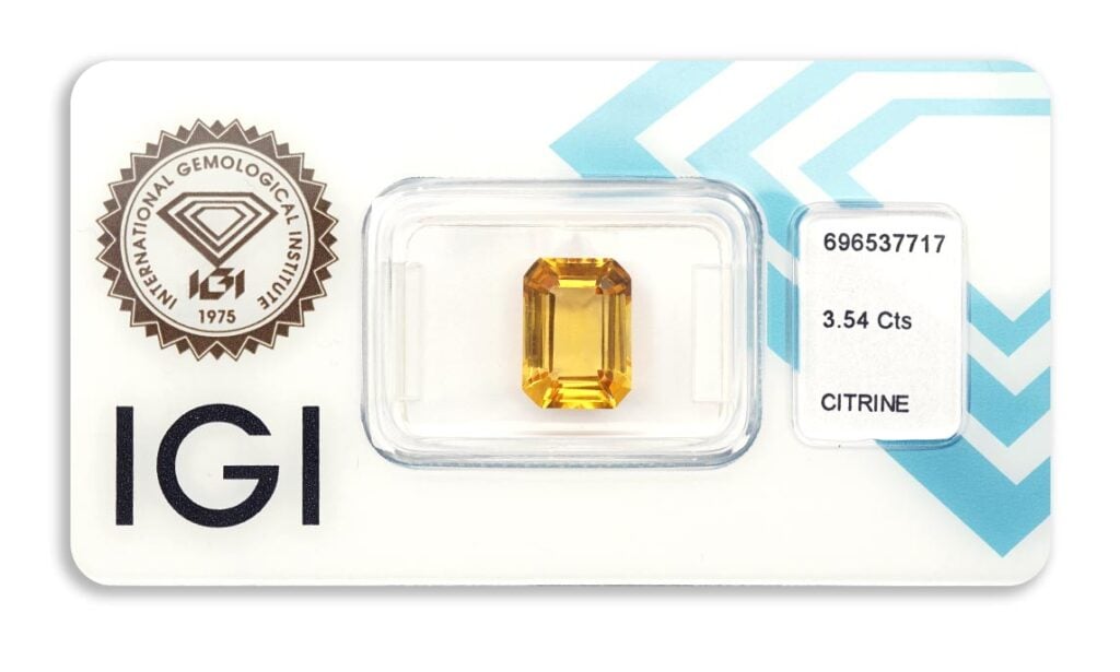 citrín 3.54ct deep brownish yellow s IGI certifikátem