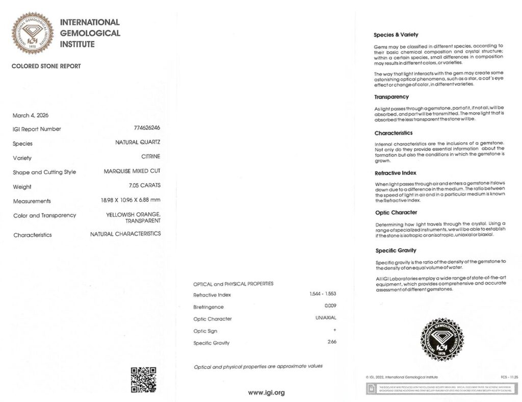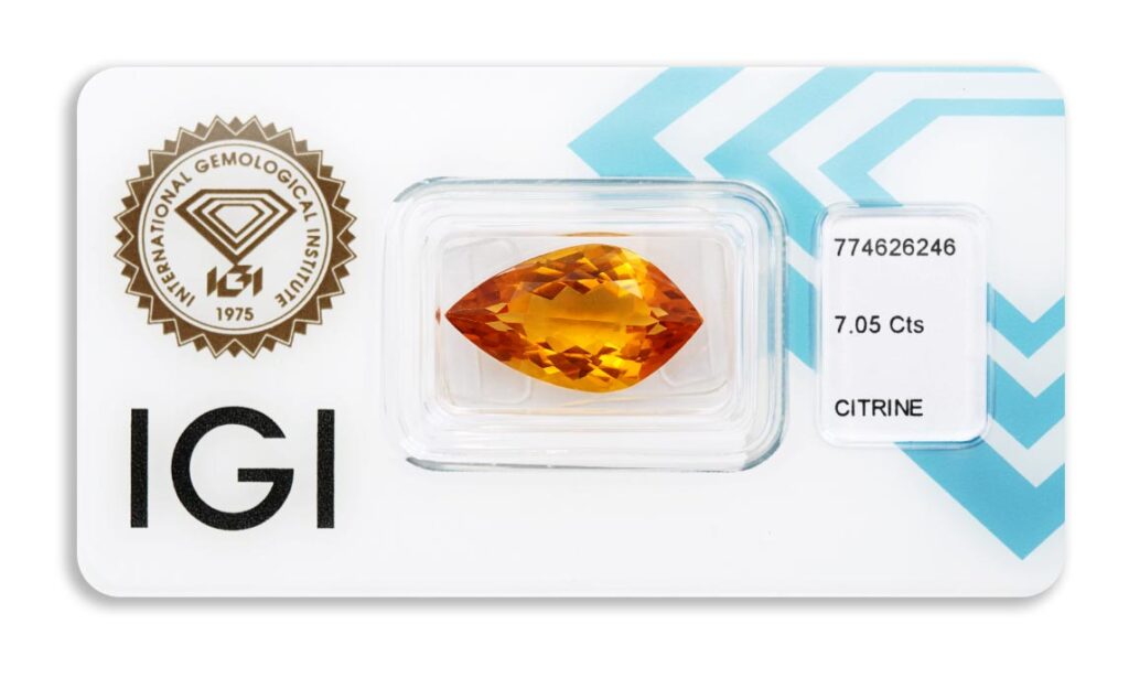citrín 7.05ct yellowish orange s IGI certifikátem