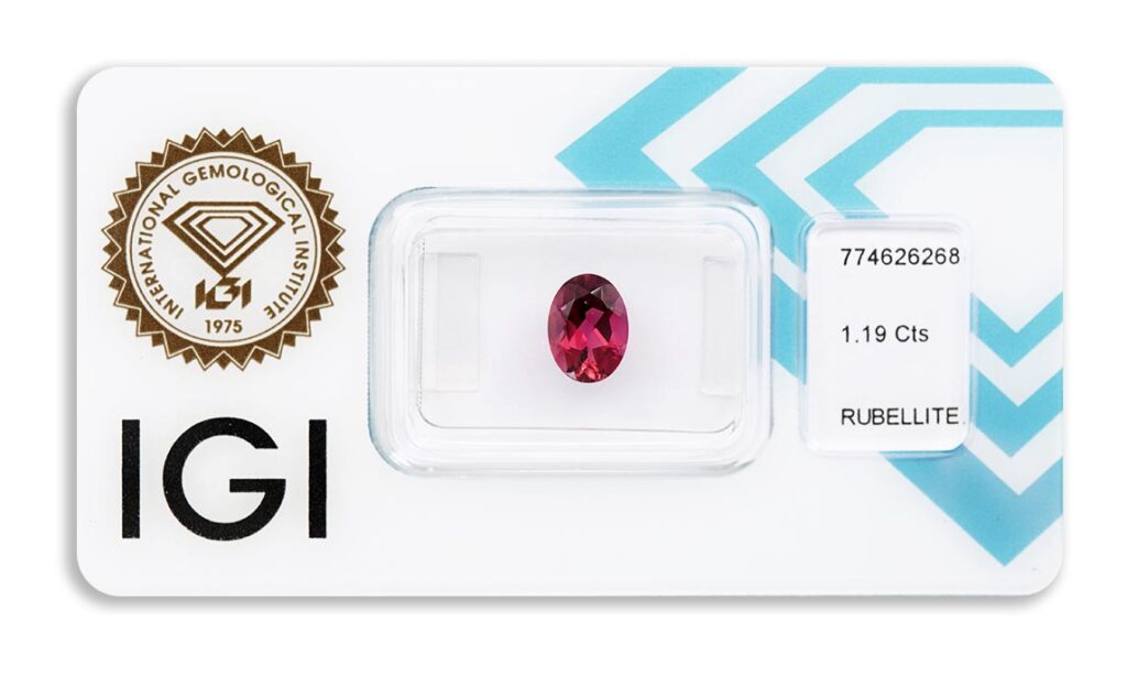 rubelit 1.19ct deep pinkish purple s IGI certifikátem