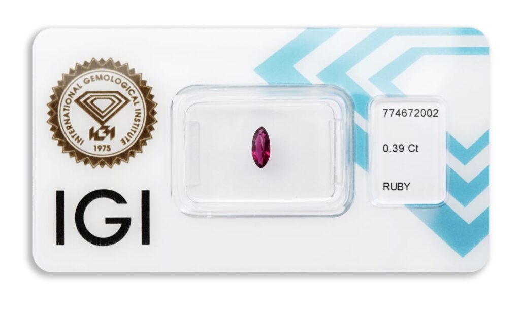 rubín 0.39ct deep purplish pink - red s IGI certifikátem