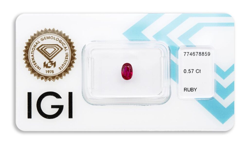 rubín 0.57ct deep pinkish red s IGI certifikátem