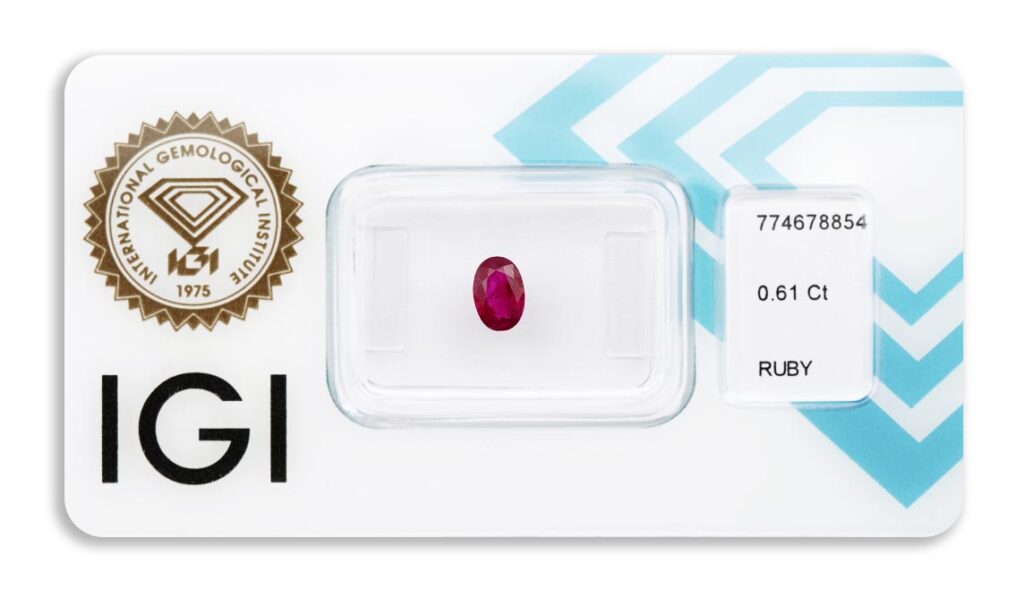 rubín 0.61ct deep pinkish red s IGI certifikátem