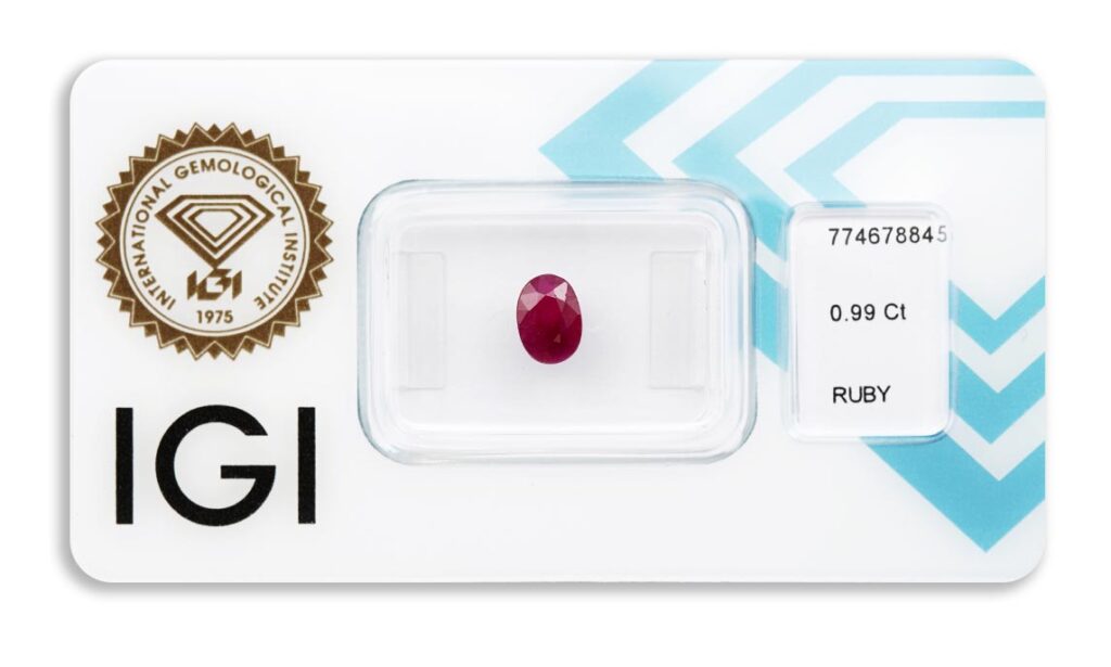rubín 0.99ct deep pinkish red s IGI certifikátem