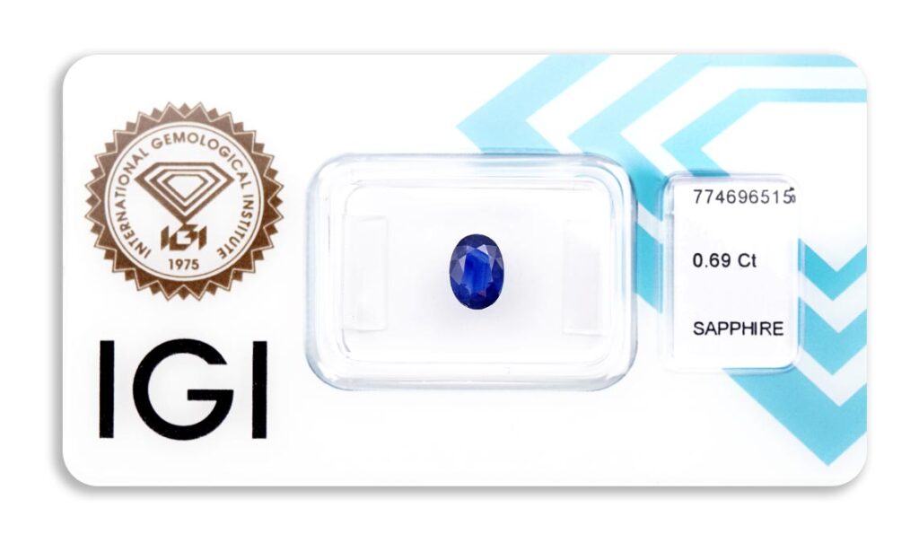 Kámen je včetně mezinárodně uznávaného certifikátu IGI a je zataven do ochranného pouzdra. Safír byl tepelně upraven (jedná se o běžnou úpravu).
