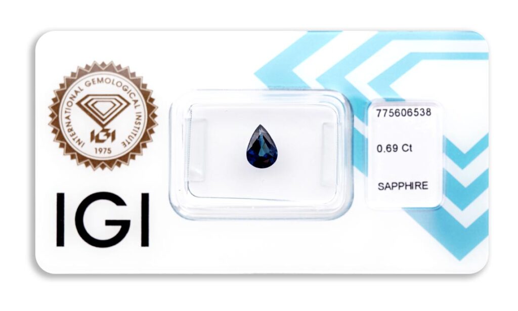 Kámen je včetně mezinárodně uznávaného certifikátu IGI a je zataven do ochranného pouzdra. Safír byl tepelně upraven (jedná se o běžnou úpravu).