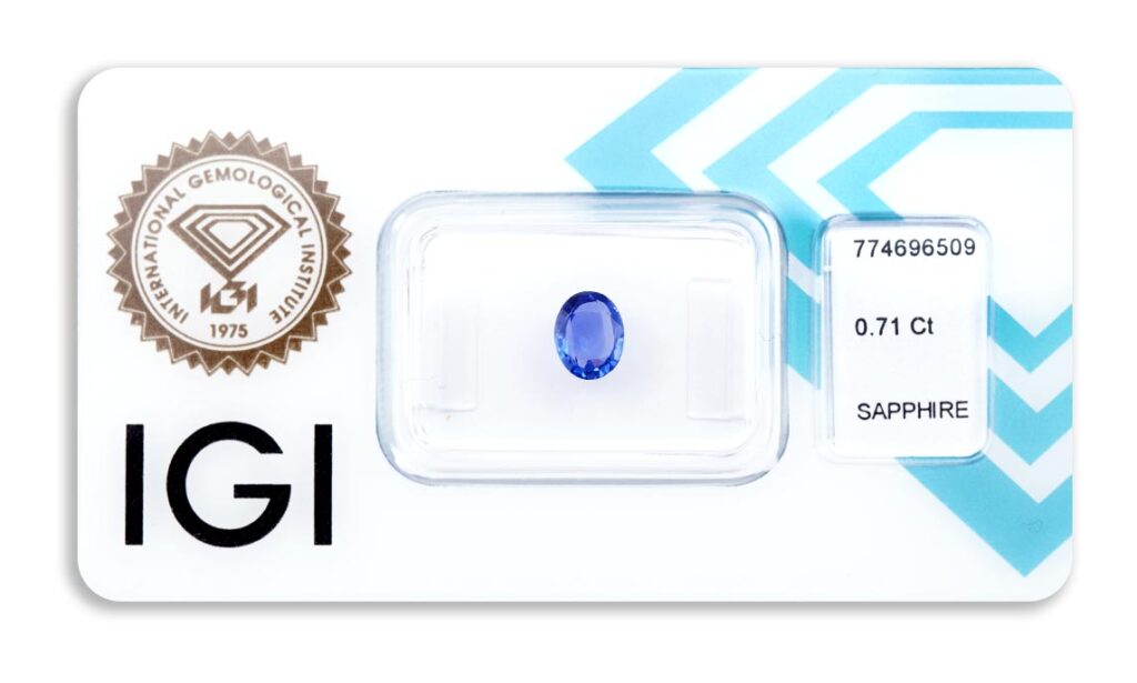 Kámen je včetně mezinárodně uznávaného certifikátu IGI a je zataven do ochranného pouzdra. Safír nebyl tepelně upraven.