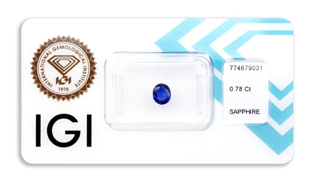 safír 0.78ct deep blue s IGI certifikátem