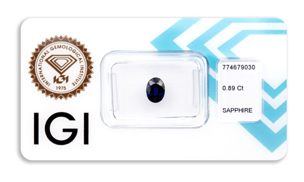 Kámen je včetně mezinárodně uznávaného certifikátu IGI a je zataven do ochranného pouzdra. Safír nebyl tepelně upraven.