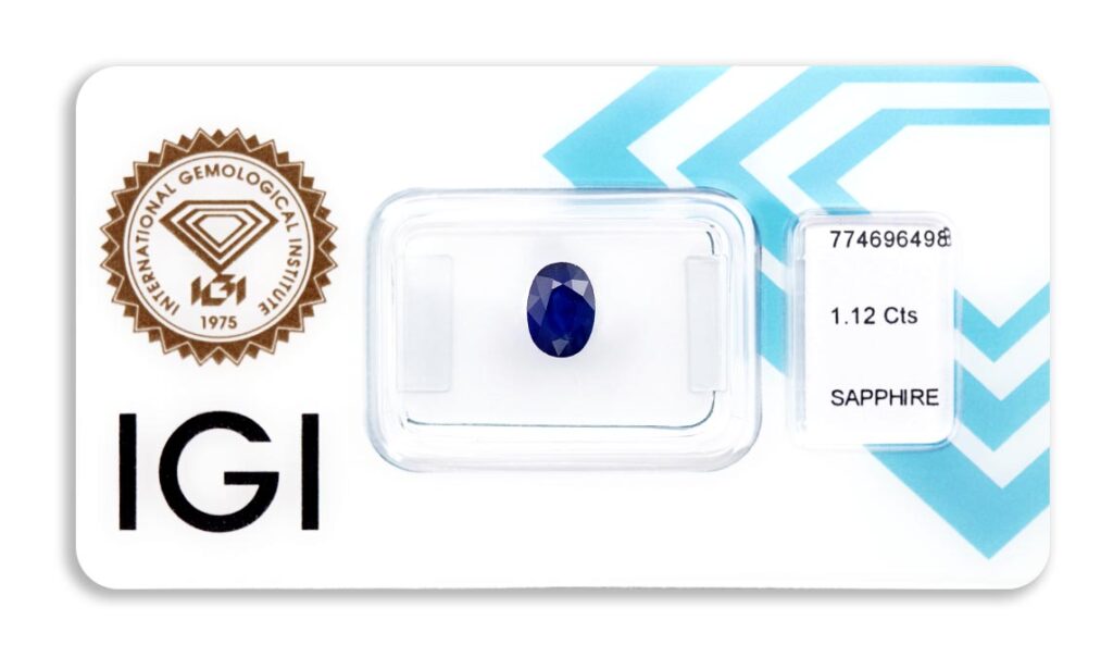 safír 1.12ct blue s IGI certifikátem