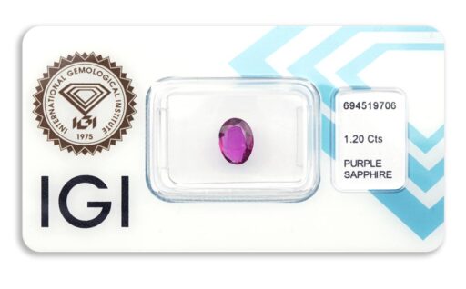 safír 1.20ct deep reddish pink - purple s IGI certifikátem