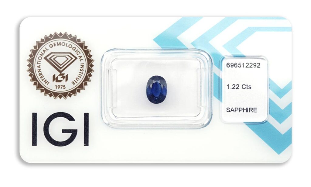 safír 1.22ct deep blue s IGI certifikátem