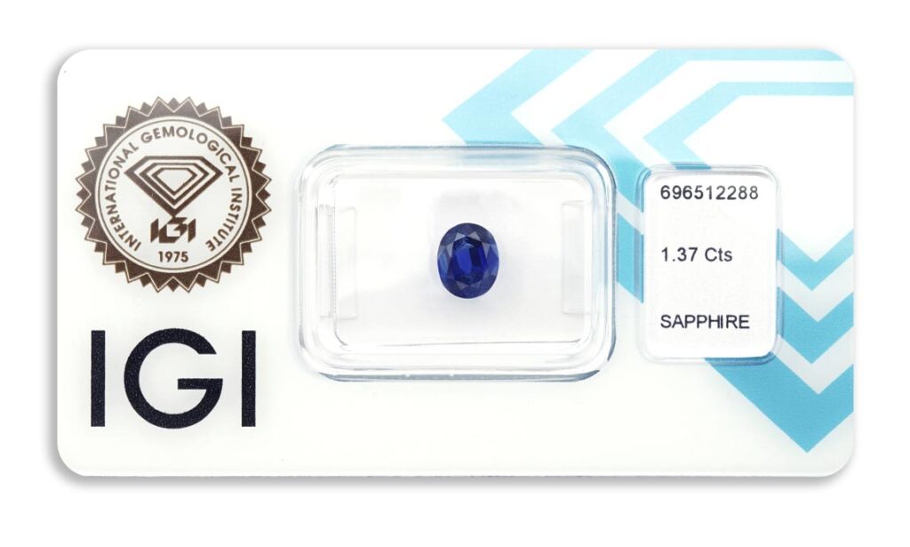 Kámen je včetně mezinárodně uznávaného certifikátu IGI a je zataven do ochranného pouzdra. Safír nebyl tepelně upraven.