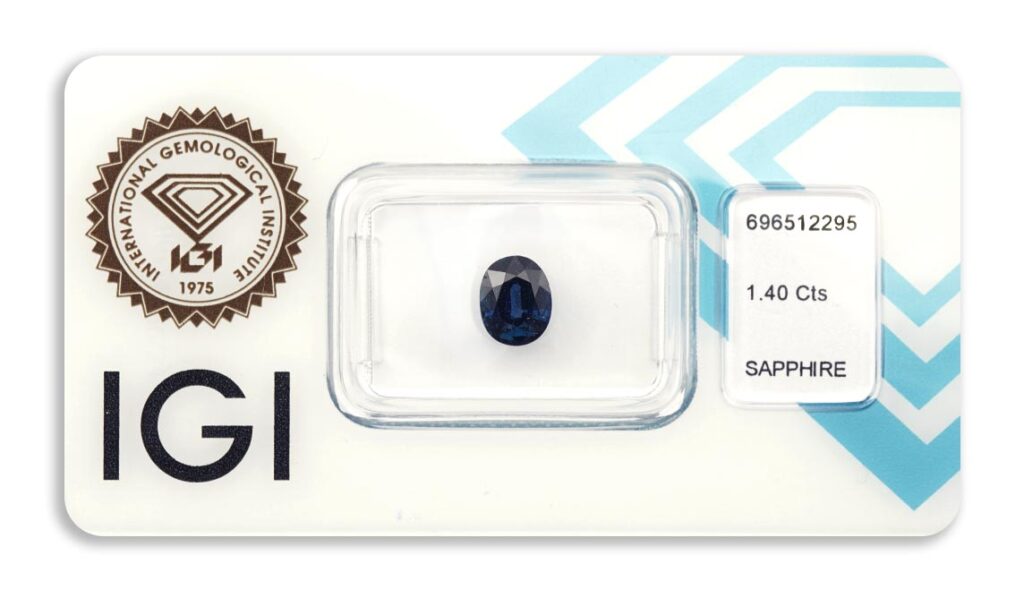 safír 1.40ct deep blue s IGI certifikátem